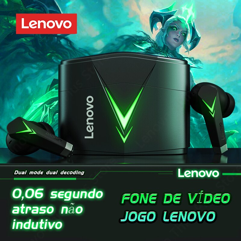 Lenovo LP6 Fone de Ouvido Bluetooth Modo Duplo para Jogos Redução de Ruído