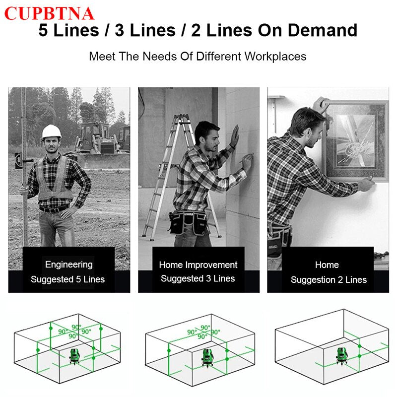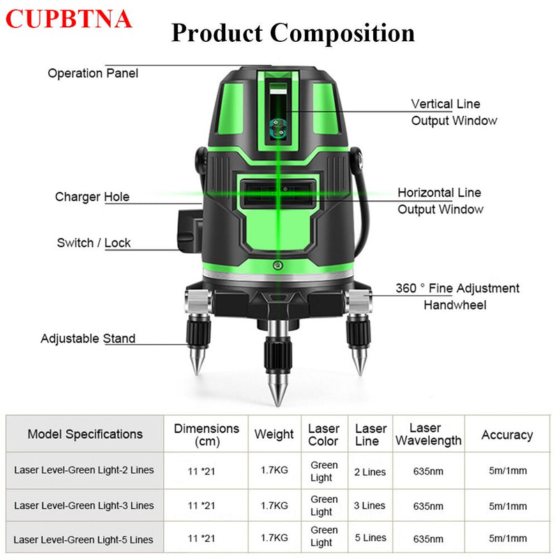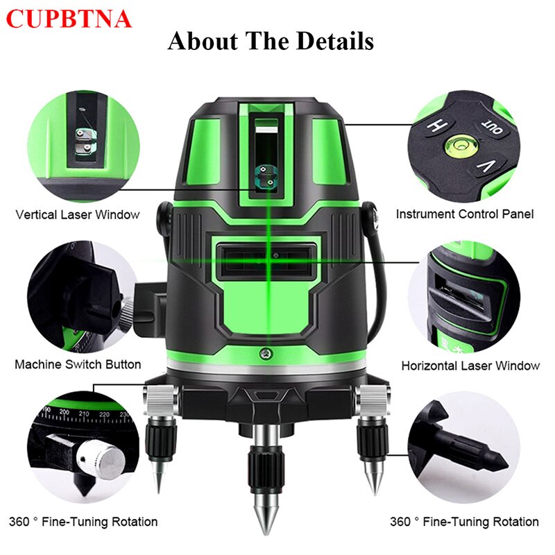 Luz verde super forte 360 graus de 360 graus de nível laser de nivelamento automático vertical para medição interna e externa