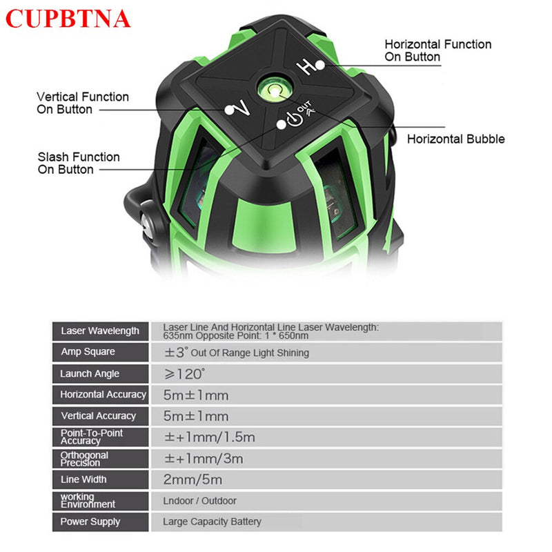 Comprimento de onda a laser: vertical e horizontal: 5 x 635nm, paixão para baixo: 1 x 650nm