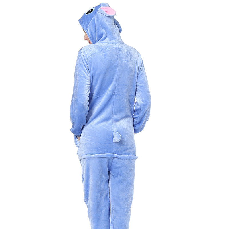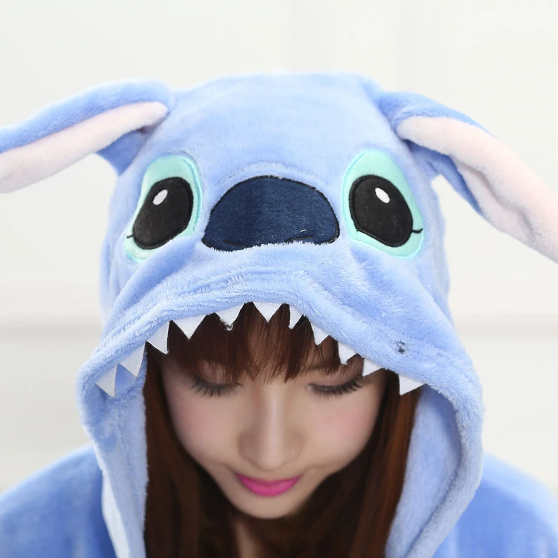 Pijama Macacão Fantasia Kigurumi Stitch Azul Cosplay Plush Adulto Unissex Tamanho