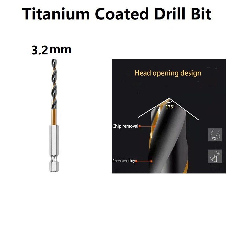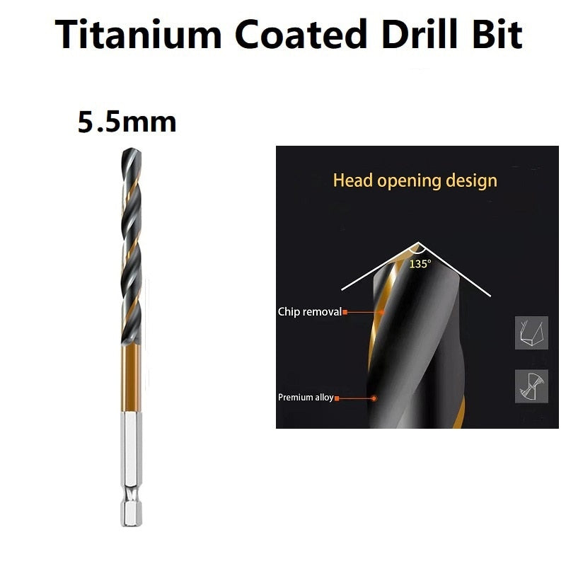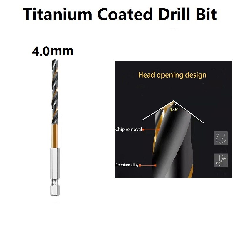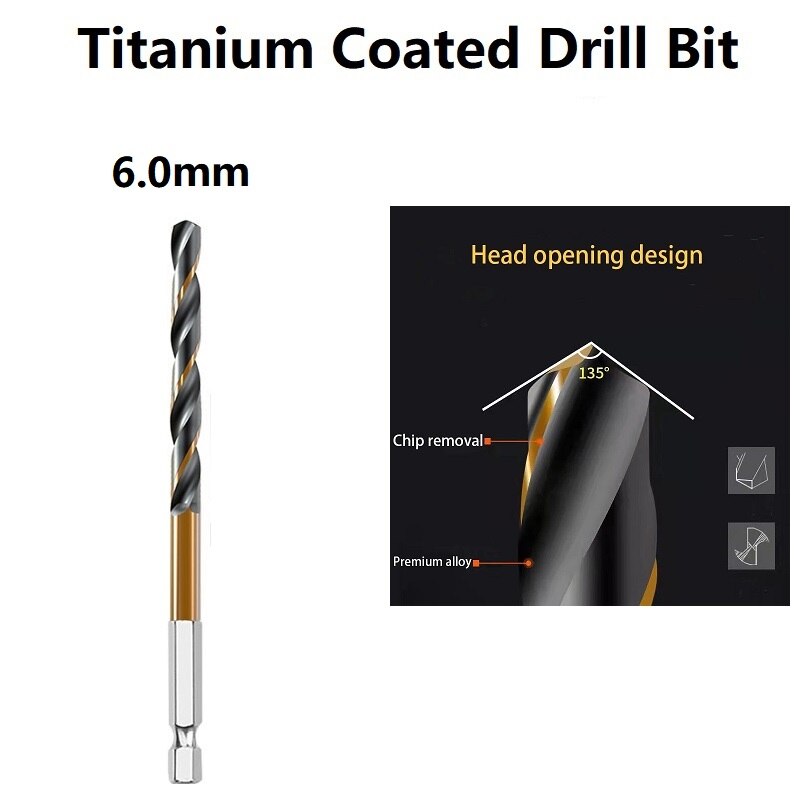 Bit de broca com revestimento de titânio de aço de alta velocidade HSS 1/4 broca de haste hexa