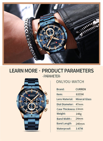 Curren 8355 Relógio à prova d'água de Luxo Masculino