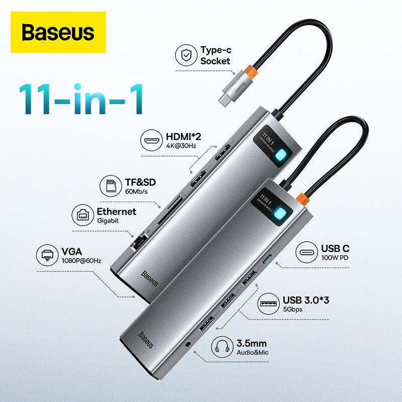 Baseus usb c hub para hdmi-compatível vga usb 3.0 adaptador 9/11 em 1 usb tipo c hub