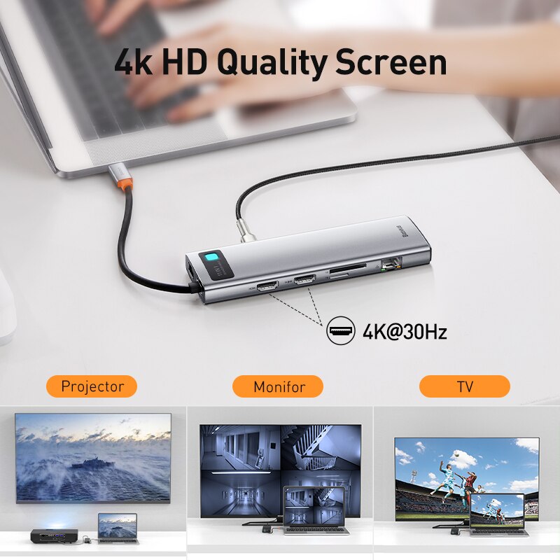 (2) 9 em 1 hdmi compatível com rj45 vga: 4k hd + 3 * usb3.0 + vga + sd + tf + rj45 + pd (support suporte 2 tela mModo irror)